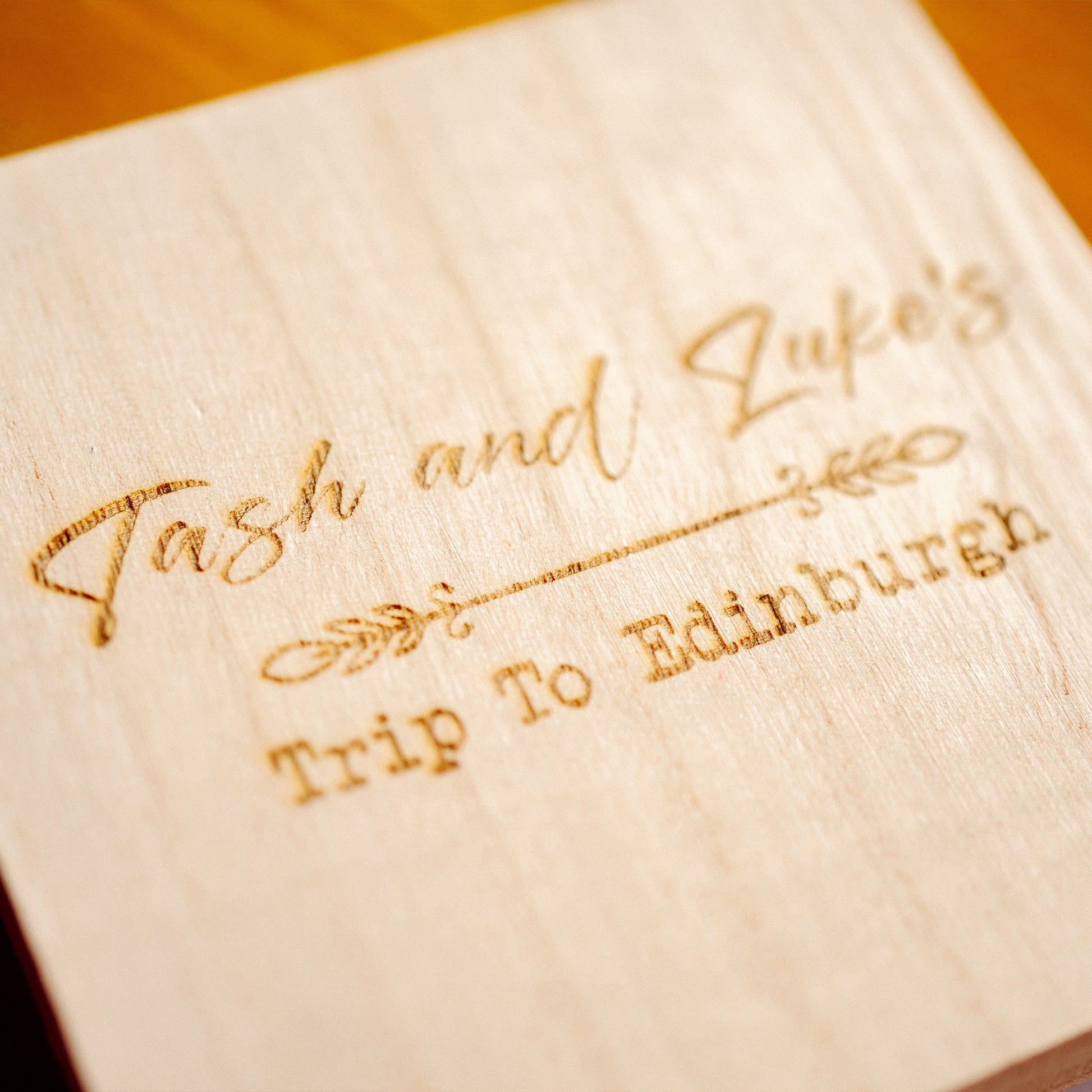 Showcase your favourite photographs in this unique from any occasion with this elegant wooden pull out box. Add that extra personal touch with custom engraving on the lid of the box.